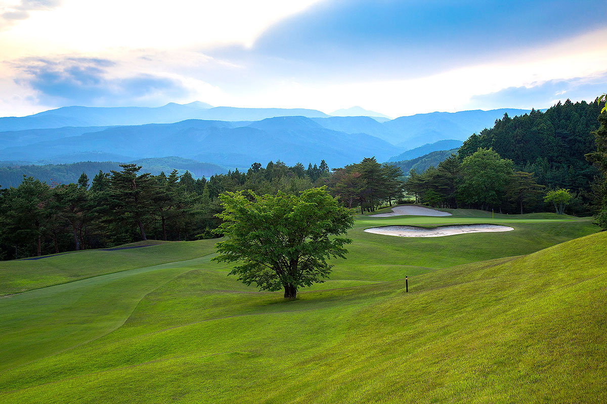 やや打ち上げの長いミドルホール。花道が狭くハンディ1の難ホール。狙い目は右、山すそ方面。