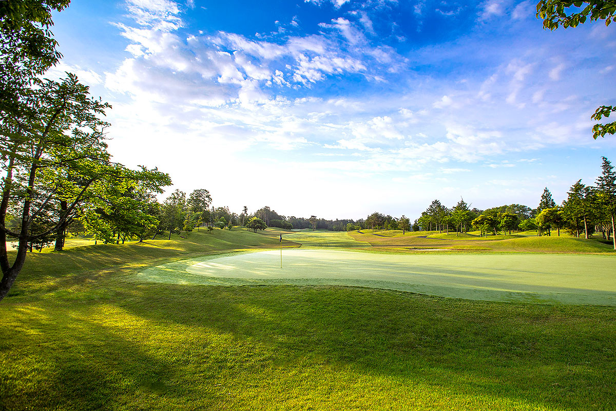 広いフェアウェイで豪快なティーショットを。狙い目は左バンカーの右側で、花道も使いやすい。