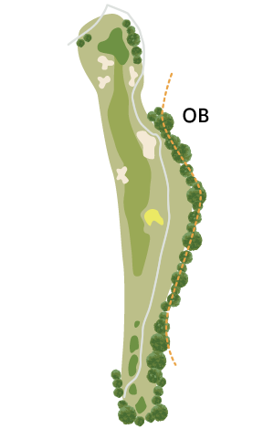 グリーンは傾斜が最も強いのでピン奥には要注意。左バンカー越えを狙うか右バンカー手前を狙うかは飛距離次第。